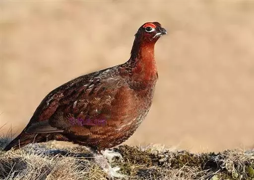柳雷鸟体长36-45毫米,雄鸟体长及体重均大于雌鸟。成年雄鸟羽色华丽,前额黑色,面颊裸露为艳红色皮肤;头顶及颈浅褐色,颏、喉和颈部羽色浓绿色;耳羽黑色并现蓝绿彩金属光泽;颈下方有一白色颈环,故而得名“柳雷鸟”。柳雷鸟的体羽四季有变化。