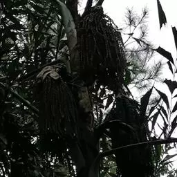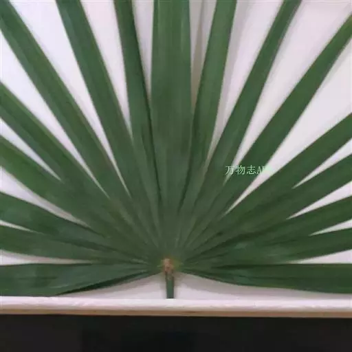 「集解」颂曰∶棕榈出岭南、西川,今江南亦有之。木高一、二丈,无枝条。叶大而圆, 有如车轮,萃于树杪。其下有皮重叠裹之,每皮一匝,为一节。二旬一采,皮转复生上。六、 七月生黄白花。八、九月结实,作房如鱼子,黑色。九月、十月采其皮用。《山海经》云∶ 石翠之山,其木多棕是也。藏器曰∶其皮作绳,入土千岁不烂。昔有人开冢得一索,已生根。 岭南有桄榔、槟榔、椰子、冬叶、虎散、多罗等木,叶皆与 榈相类。时珍曰∶棕榈,川、 广甚多,今江南亦种之,最难长。初生叶如白芨叶;高二、三尺则木端数叶大如扇,上耸, 四散歧裂,其茎三棱,四时不凋。其干正直无枝,近叶处有皮裹之,每长一层即为一节。干 身赤黑,皆筋络,宜为钟杵,亦可旋为器物。其皮有丝毛,错纵如织,剥取缕解,可织衣、 帽、褥、椅之属,大为时利。每岁必两、三剥之,否则树死,或不长也。三月于木端茎中出 数黄苞,苞中有细子成列,乃花之孕也,状如鱼腹孕子,谓之棕鱼,亦曰棕笋。渐长出苞, 则成花穗,黄白色。结实累累,大如豆,生黄熟黑,甚坚实。或云∶南方此木有两种∶一种 有皮丝,可作绳;一种小而无丝,惟叶可作帚。郑樵《通志》以为王彗者,非也。王彗乃落 帚之名,即地肤子。别有蒲葵,叶与此相似而柔薄,可为扇、笠,许慎《说文》以为棕榈亦 误矣。
