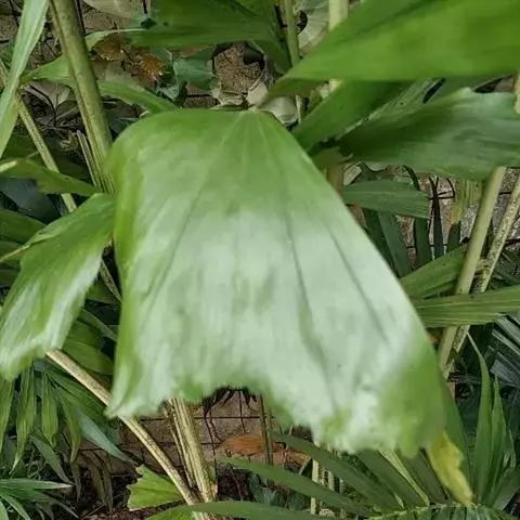 气候性病害:主要出现在西缘山地,这是由于花期的低温和阴雨使花序蕾不能长出苞片致病而引起的腐烂。 主要影响棕片色泽,形成所谓“花壳棕”。