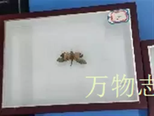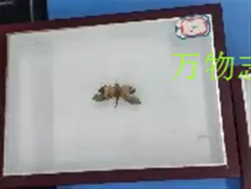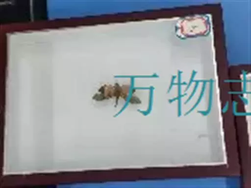 腹部是黄色的。头和胸是黑色的。胸腔下部有红色的毛发。