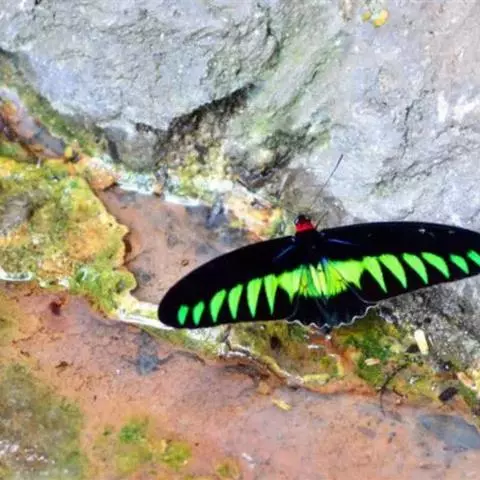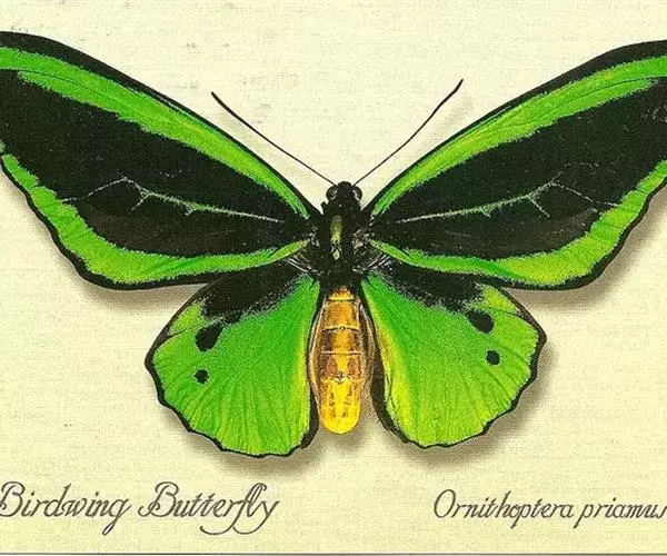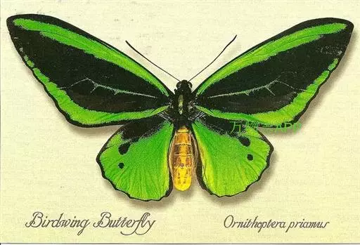 绿鸟翼凤蝶:又名东方之珠蝶,拉丁文学名:Ornithoptera priamus ( Linnaeus , 1758 ),凤蝶科鸟翼凤蝶属的一个物种。是印度尼西亚国蝶,也世界上非常珍稀的蝶类昆虫之一。为一种雌雄异体的昆虫。