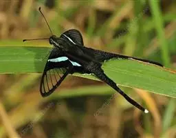上面的前翼是天鹅绒般的黑色。有一种绿色(大多数种族)的亚肋条纹和一种绿色(大多数亚种)边缘条纹与翼背侧。前翼的下面是黑色的。有一串蓝色或绿色的后盘。后翅是绿色的。在机翼前缘(costa),有基底的黄金矿点。此外还有一系列的黑点,边缘是黑色的。