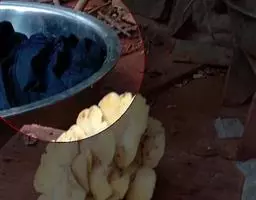 2、水开后将兔肉煮至九成熟捞出,冷却后切成手指节左右大小的肉丁,肉一定要现剐新鲜的,肉丁不宜切的太小,放一旁备用。另准备花椒,干红辣椒切成段,生姜、蒜切片备用。喜食麻辣味重的,花椒辣椒可多准备点;