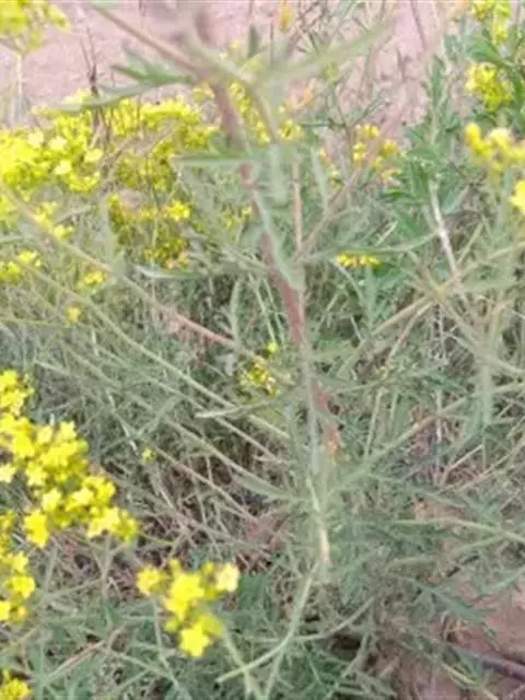 糙叶败酱( Patrinia rupestris Juss.subsp.scabra H.J.Wang),败酱科植物,多年生草本,茎丛生,茎上部多分枝,叶对生,裂片倒披针形、狭披针形或长圆形,聚伞花序顶生,呈伞房状排列,花小,黄色,花冠合瓣,果实翅状,卵形或近圆形,种子位于中央。