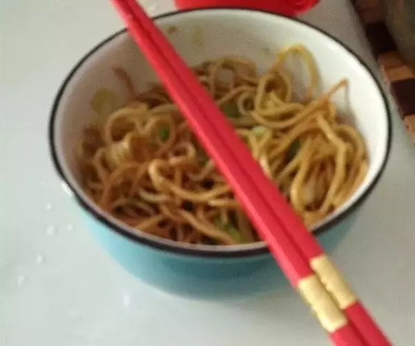 面条盛入碗中,加入酱料,撒上胡萝卜丁和香葱花拌匀即可食用。