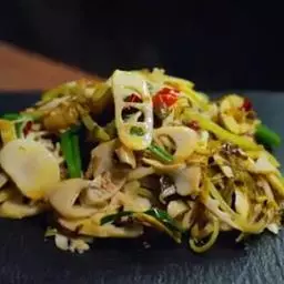 炝锅面是一道以面条、虾米、小白菜、黄豆芽作为主要食材,…