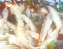 面捞起来,放到碗里,加入,辣椒油,味精,酱油,醋;