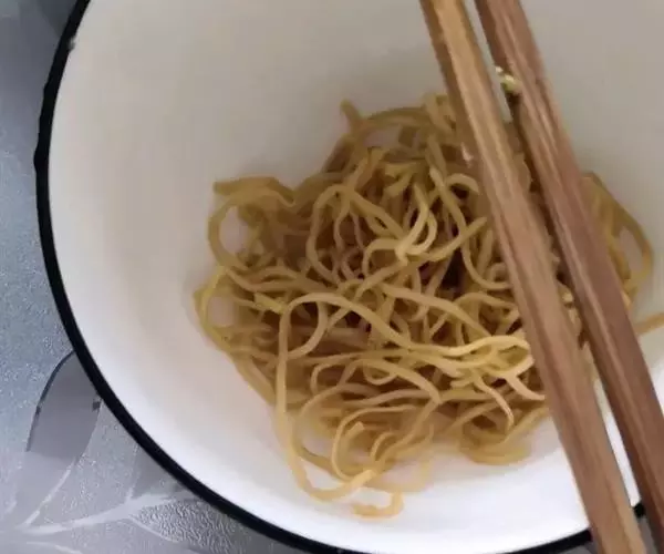 2.面条煮第一次时放入宽敞的容器内,用筷子挑散晾凉。