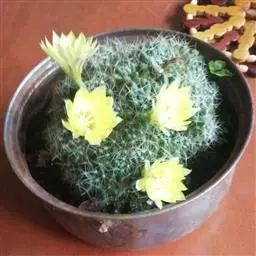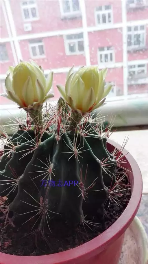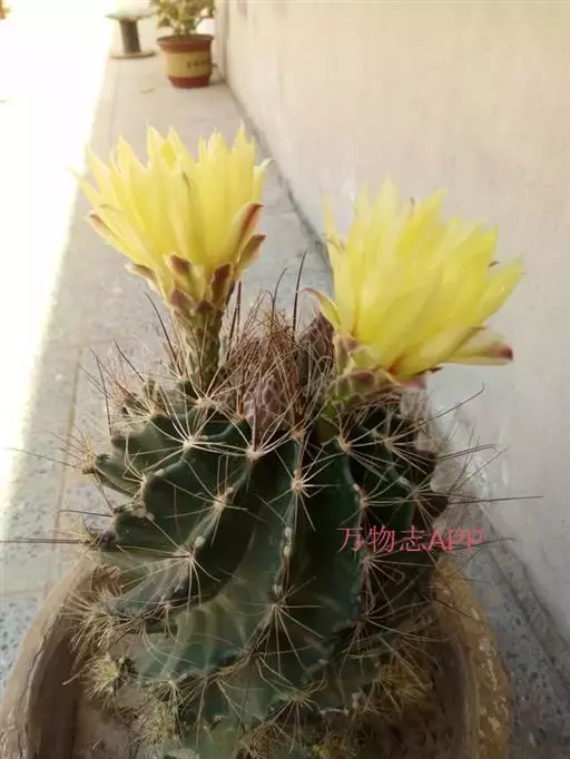 植物形态:多年生常绿肉质草本,高约15cm。茎球形,椭圆形或倒卵形,绿色,肉质,有纵棱12~14条,棱上有丛生的针刺,通常每丛6~10枚,少数达15枚,长2-4cm,硬直,黄色或黄褐色,长短不一,辐射状,刺丛内着生密集的白绒毛。中细小,生于刺丛内,早落。