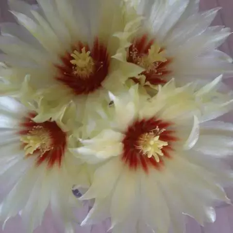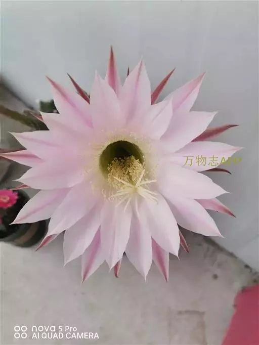 花大形,侧生,着生于刺丛中,粉红色,夜间开放,长喇叭状,长15~20cm,花筒外被鳞片,鳞片腋部具长绵毛。浆果球形或卵形,无刺。种子细小,多数。花期5~6月。