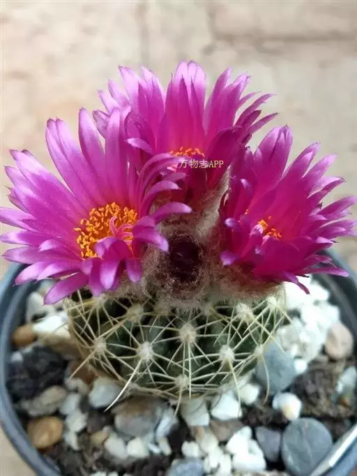 5、旺盛丸:植株灰绿色,球形或筒状,花大,暗粉或深红色;