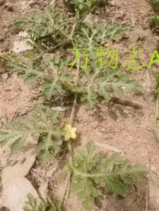 西瓜(学名:Citrullus lanatus (Thunb.) Matsum. et Nakai,别名:夏瓜、寒瓜、青门绿玉房)一年生蔓生藤本;茎、枝粗壮,具明显的棱。卷须较粗壮,具短柔毛,叶柄粗,密被柔毛;叶片纸质,轮廓三角状卵形,带白绿色,两面具短硬毛,叶片基部心形。雌雄同株。雌、雄花均单生于叶腋。雄花花梗长3-4厘米,密被黄褐色长柔毛;花萼筒宽钟形;花冠淡黄色;雄蕊近离生,花丝短,药室折曲。雌花:花萼和花冠与雄花同;子房卵形,柱头肾形。果实大型,近于球形或椭圆形,肉质,多汁,果皮光滑,色泽及纹饰各式。种子多数,卵形,黑色、红色,两面平滑,基部钝圆,通常边缘稍拱起,花果期夏季。