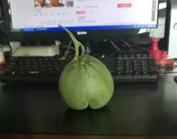 椭圆形,瓜大,瓜皮浅绿和深绿相间。