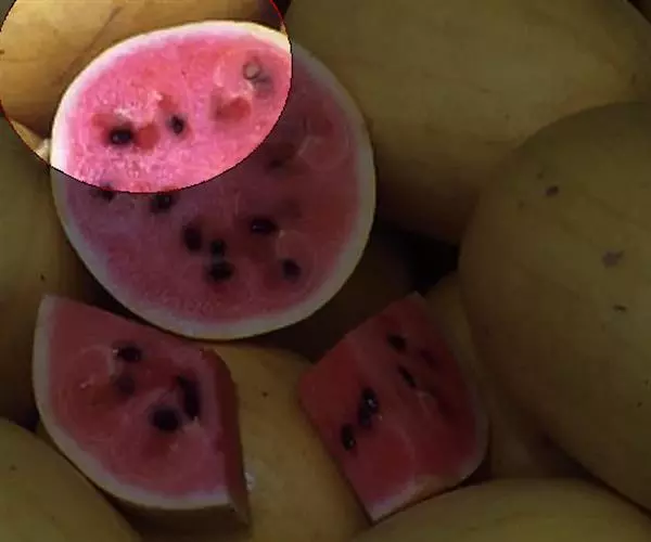 根据遗传特性,可人工种植出无籽西瓜,圆形,瓜瓤内没有籽,需每年育种。