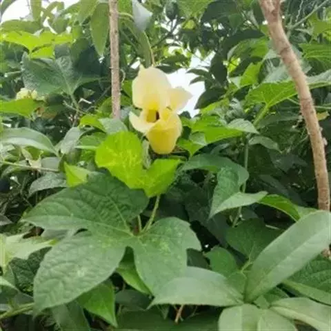 雌雄同株。雌、雄花均单生于叶腋。雄花:花梗长3-4厘米,密被黄褐色长柔毛;花萼筒宽钟形,密被长柔毛,花萼裂片狭披针形,与花萼筒近等长,长2-3毫米;花冠淡黄色,径2.5-3厘米,外面带绿色,被长柔毛,裂片卵状长圆形,长1-1.5厘米,宽0.5-0.8厘米,顶端钝或稍尖,脉黄褐色,被毛;雄蕊3,近离生,1枚1室,2枚2室,花丝短,药室折曲。雌花:花萼和花冠与雄花同;子房卵形,长0.5-0.8厘米,宽0.4厘米,密被长柔毛,花柱长4-5毫米,柱头3,肾形。