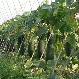 一般采用三蔓整枝方式。在主蔓8-9叶时,选留主蔓和两个健壮侧蔓,其余子蔓和孙蔓全部除去。整枝不宜在阴雨天进行,以防传播病害。当蔓长到50厘米左右时,结合整枝用泥土压蔓,以后间隔3-4节再压1次,每蔓共压2-3次,将瓜蔓均匀摆布好。