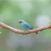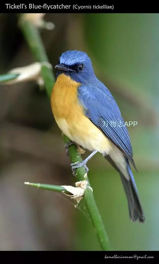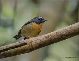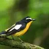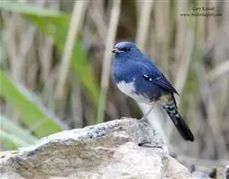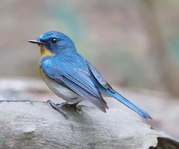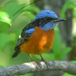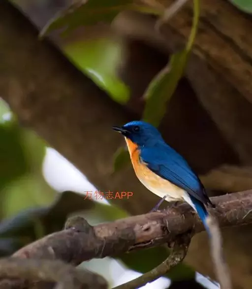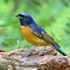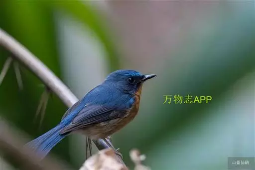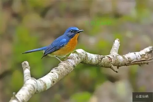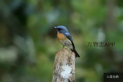 山蓝仙鹟(学名:Cyornis banyumas):小型鸟类,体长13-15厘米。雄鸟额基和眼先黑色,颏橙棕色,仅颏尖为蓝黑色,喉、胸、上腹和两胁亦为橙棕色,下体白色范围较小,仅局限于下腹和尾下覆羽。雌鸟上体少黄色,颏、喉、胸概为锈红色,喉无白色。