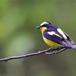 白眉姬鹟是小型鸟类,体长11-14厘米。雄鸟上体大部黑色,眉纹白色,在黑色的头上极为醒目。腰鲜黄色,…