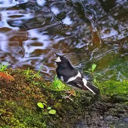 赭红尾鸲:小型鸟类,体长13-16厘米。雄鸟前额、头侧、颈侧、颏至胸概黑色,头顶和背灰色或黑色,…