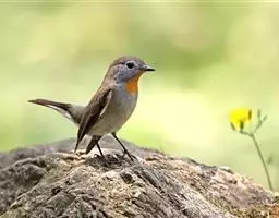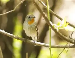 橙胸姬鹟:体长12-16厘米,是一种体型略小的林栖型鹟。尾黑而基部白,上体橄榄褐色,额具一白色横带,…