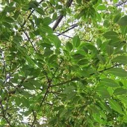 君迁子(Diospyros lotus L.)柿科落叶乔木,高可达30米,胸高直径可达1.3米;树冠近球形或扁球形;树皮灰黑色或灰褐色;小枝褐色或棕色;嫩枝通常淡灰色,有时带紫色。冬芽带棕色。叶椭圆形至长椭圆形,上面深绿色,有光泽,下面绿色或粉绿色,有柔毛;叶柄有时有短柔毛,上面有沟。雄花腋生;花萼钟形;花冠壶形,带红色或淡黄色。果近球形或椭圆形,初熟时为淡黄色,后则变为蓝黑色,常被有白色薄蜡层,8室;种子长圆形,褐色,侧扁。花期5-6月,果期10-11月。