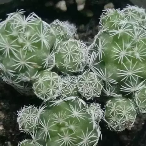 银手球,仙人掌科乳突球属,植株群生,小短圆筒形。原产墨西哥伊达尔戈州。