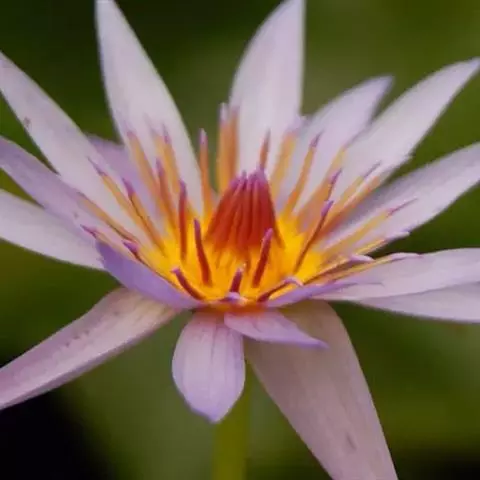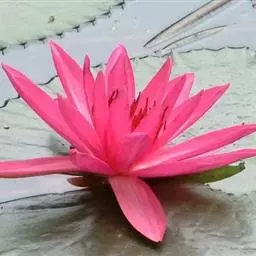 花直径2-8厘米;花梗略和叶柄等长;萼片矩圆形,长5-8厘米;花瓣12-14,白色、红色或粉红色,矩圆形,长5-9厘米,先端圆钝,具5纵条纹;雄蕊花药先端不延长,外轮花瓣状,内轮不孕,花丝扩大,宽约2毫米;柱头具12-15辐射线,具棒状附属物。