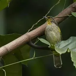 通常在乔木树冠层或林下灌木上活动和觅食,有时喜欢悬吊在柔软的细枝枝头荡来荡去。
