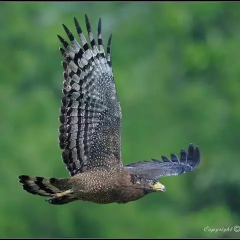 乌雕是隼形目鹰科雕属鸟类,别名有花雕、小花皂雕。通体为暗褐色,背部略微缀有紫色光泽,…