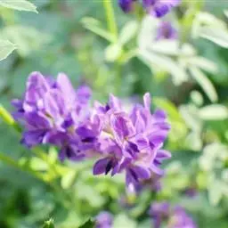 天蓝苜蓿是豆科,苜蓿属多年生草本植物。高可达60厘米,全株被柔毛或有腺毛。主根浅,须根发达。…