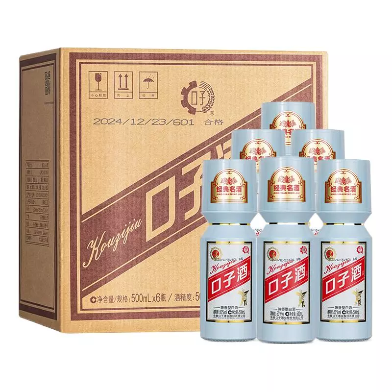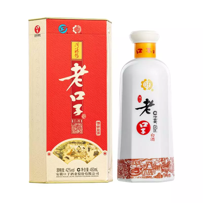 口子窖酒以优质高粱、大米、玉米、糯米、小麦为原料,采用口子窖酒大曲为糖化、发酵、生香剂,续楂混蒸老五甑,分别入泥窖双轮、单轮发酵,入石板窖多轮发酵,发酵期120天、60天、30天,缓慢蒸馏,量质摘酒,分级贮存,再经勾兑、陈酿、包装出厂。基酒酒龄不少于五年,调味酒酒龄不少于十年。