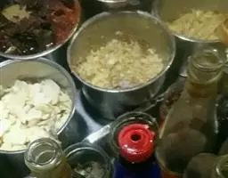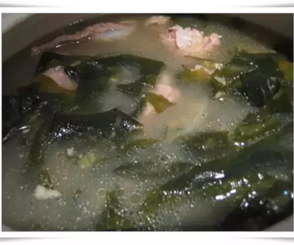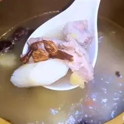 步骤三:锅中注水烧沸,放入猪腰块、猪瘦肉块、腰果碎、核桃仁、姜片,大火煮沸,转小火煮约3小时,加盐调味即成。