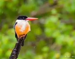 白领翡翠:有50个亚种。体长18厘米,体重35-40克。是一种蓝白色翡翠鸟。…