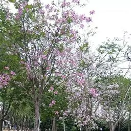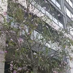 洋紫荆:落叶乔木;树皮暗褐色,近光滑;幼嫩部分常被灰色短柔毛;枝广展,硬而稍呈之字曲折,无毛。叶近…