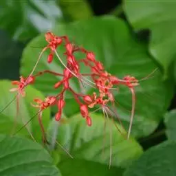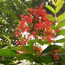 烟火树 Merr.)是唇形科、大青属常绿灌木或小乔木,株高可达4米。幼枝方形,墨绿色。叶对生,…