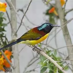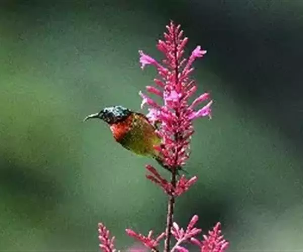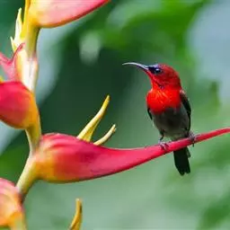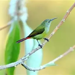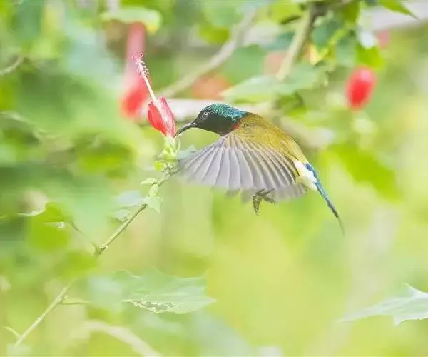 叉尾太阳鸟(学名:Aethopyga christinae),别称燕尾太阳鸟,是雀形目太阳鸟科一种体型非常小而纤弱的鸟,体长约9厘米,雄鸟头颈及尾上金属绿色,两根中央尾羽特别长,具赭红色的喉斑,上体橄榄色或近黑色,余部污橄榄白色;雌鸟较小,上体橄榄色,下体浅绿黄色 ;它们的嘴细长下弯,舌呈管状,专门用来吮吸花蜜,因此又被称为“亚洲蜂鸟” 。