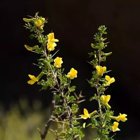 一年生草本。根部有丰富的根瘤;茎直立或匍匐,长30-80厘米,茎和分枝均有棱,被黄色长柔毛,后变无毛。叶通常具小叶2对;托叶长2-4厘米,具纵脉纹,被毛;叶柄基部抱茎,长5-10厘米,被毛;小叶纸质,卵状长圆形至倒卵形,长2-4厘米,宽0.5-2厘米,先端钝圆形,有时微凹,具小刺尖头,基部近圆形,全缘,两面被毛,边缘具睫毛;侧脉每边约10条;叶脉边缘互相联结成网状;小叶柄长2-5毫米,被黄棕色长毛;花长约8毫米;苞片2,披针形;小苞片披针形,长约5毫米,具纵脉纹,被柔毛;萼管细,长4-6厘米;花冠黄色或金黄色,旗瓣直径1.7厘米,开展,先端凹入;翼瓣与龙骨瓣分离,翼瓣长圆形或斜卵形,细长;龙骨瓣长卵圆形,内弯,先端渐狭成喙状,较翼瓣短;花柱延伸于萼管咽部之外,柱头顶生,小,疏被柔毛。荚果长2-5厘米,宽1-1.3厘米,膨胀,荚厚,种子横径0.5-1厘米。花果期6-8月。