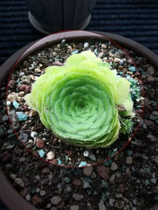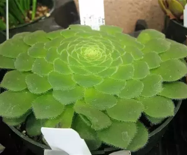 明镜为多年生肉质植物,植株低矮扁平,叶片草绿色,叶边缘生有白色绒毛,叶片无叶柄,呈匙形。 它的叶片比较薄,一点不厚实,叶片上有一层绒毛,叶片呈平板型排列,不会向上聚拢生长,只能不断增大直径。