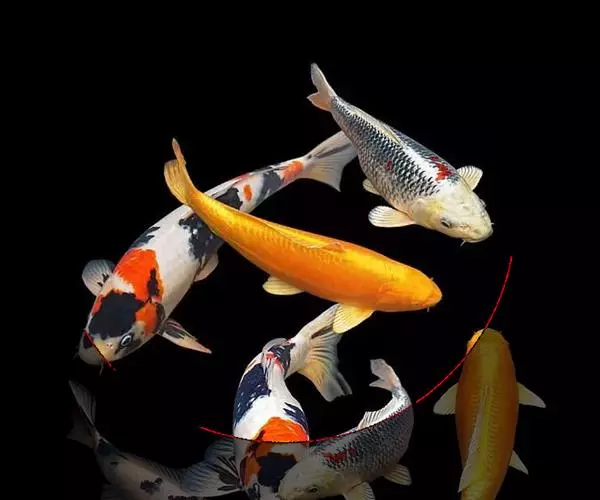 红白锦鲤体表底色银白如雪,上镶嵌有变幻多端的红色斑纹,在清澈透明的水中邀游,可谓鲜艳绝伦,红白色花纹象征日本国旗的颜色,故最与日本人意念融合,因此红白锦鲤在日本被认为是锦鲤的正宗。大正三色锦鲤的特点是:在鱼体雪白的底色上,又浮现出绯红、乌黑两色斑纹,斑纹呈现出优美自然的图案,以头部只有清晰红斑、背部只有黑斑、胸鳍上只有黑色条纹的为上乘。它在每年的品评会上敢与红白锦鲤争高低。