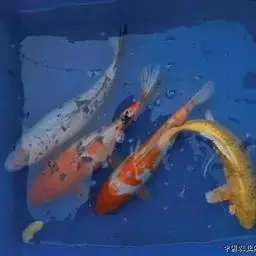 15.别光:白底、红底或黄底上有黑斑的锦鲤,属于大正三色品系。细分为近十品种。