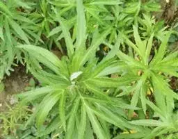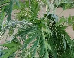 艾叶第1茬收获期为6月初,于晴天及时收割,割取地上带有叶片的茎枝,并进行茎叶分离,摊晒在太阳下晒干,或者低温烘干,打包存放。7月中上旬,选择晴好天气收获第2茬,下霜前后收取第3茬,并进行田间冬季管理。
