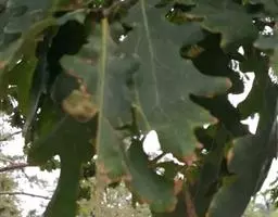 危害症状:栎掌舟娥是为害栎类的食叶害虫,幼虫群食叶片,大量发生时可将叶片食光,严重影响树木生长和栎实产量,也为害柞蚕生产。