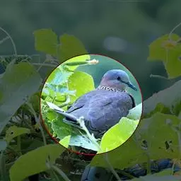 山斑鸠,是鸽形目鸽鸠科斑鸠属鸟类,又名金背斑鸠、棕背斑鸠、山鸠、金背鸠、麒麟斑、麒麟鸠、东方斑鸠、绿斑鸠、山鸽子。山斑鸠颈侧具明显黑白色条纹的块状斑,上体深褐色、具扇贝状斑纹,羽缘棕色,尾羽近黑色,下体多偏粉色。虹膜黄色,喙灰色,脚粉色。山斑鸠是留鸟,在中国常见且分布广泛。此外,还分布于不丹、尼泊尔、巴基斯坦、印度、日本等国。栖息于针阔混交林、季风常绿阔叶林、果园及农耕区,多成对活动于开阔农耕区、村舍、寺院周围及防火林带。取食于地面,主要觅食植物种子、果实、嫩芽等,也吃昆虫。山斑鸠飞翔时鼓翼快速,叫声为反复而低沉的“咕咕咕”声。繁殖期在4-7月,营巢于林中树上,通常一年繁殖2窝,窝卵数2枚,由雌雄亲鸟轮流孵卵,孵化期18~19天。山斑鸠的肉、卵可食,肉入药可益气明目、强筋壮骨,治久病气虚、衰弱无力、两目昏暗等病症。山斑鸠啄食杂草种子,对农田清除杂草有益;但有时也刨食农作物及树的种子。山斑鸠