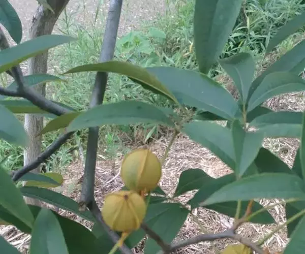 被腺体,具1-3雌花。雌 花卵形或阔椭圆形,密被橙黄色腺体,长约5-6毫米,总苞的裂片被有毛及腺体,外侧1 片(即苞片)显著较长,钻状线形。果实倒卵形,向基部渐狭,幼时具4狭翅状的纵棱,密被橙黄色腺体,成熟时腺体变稀疏,纵棱亦变成不显著;外果皮干燥后革质,厚约2-3毫米, 沿纵棱裂开成4瓣;果核倒卵形或椭圆状卵形,有时略侧扁,具极不显著的4纵棱,顶端急尖而具1短凸尖,20-25毫米长,直径15-20毫米;内果皮硬,淡灰黄褐色,1毫米厚; 隔膜内及壁内无空隙;子叶2深裂。4-5月开花,9月果成熟。