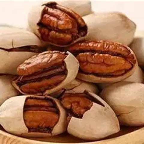 山核桃核仁松脆味甘,香气逼人,可榨油、炒食,也可作为制糖果及糕点的佐料。山核桃果仁中含有7.8-9.6%的蛋白质,人体必需的氨基酸占7种以上且含量高达25%以上,还含有22种人体所需的微量元素,其中钙、镁、磷、锌、铁含量十分丰富。据资料分析,每公斤核桃仁等于9公斤鲜牛奶或5公斤鸡蛋、2公斤牛肉的营养价值,而且它较牛奶、鸡蛋、牛肉的营养易为人体吸收。核仁还具有润肺补气、养血平喘、润燥化痰去虚寒诸功效。 [7-8] 1、核桃仁含有较多的蛋白质及人体营养必需的不饱和脂肪酸,这些成分皆为大脑组织细胞代谢的重要物质,能滋养脑细胞,增强脑功能。 2、核桃仁胡桃醌有防止动脉硬化,降低胆固醇的作用;此外,核桃还可用于治疗非胰岛素依赖型糖尿病;核桃对癌症患者还有镇痛,提升白细胞及保护肝脏等作用。