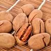 “大明果”与“小胡桃” 山核桃别名很多,产区称山核桃为“山蟹”,因“核”与“蟹”在方言中发言相近。昌化人还有称山核桃为“大明果”的,这颇有故事性。 山核桃 据说,元朝末年,刘伯温从天目山来到隐将千亩田遇上了朱元璋,两人谈古论今,一拍即合。刘伯温看朱元璋身材魁梧,仪表非凡,胸有大志,就劝他在千亩田招兵买马灭元,朱元璋说:“谈何容易,首先军粮那里来啊?”这倒难煞了刘伯温。 一日,刘伯温闲着无事,走进伙房,见厨师从沸水里煮芹菜,问道:“这是为何?”厨师说:“芹菜略有苦味,放进沸水稍煮片刻捞上来再烧,就无苦味了。”从这事,刘伯温想到无人问津的漫山遍野的山核桃,能否放到水里去煮除去苦味,经一试,果然灵验,在放到火笼一烘,山核桃成了既香又脆的美味佳果。这消息不胫而走,大批山核桃运往苏、杭州出售,从此百姓手里钱多粮足。刘伯温把这件事告诉了朱元璋,朱元璋抓住可这个机遇,招兵募捐,训练兵马,兵分数路,打下山去。朱元璋这次出兵,兵多粮足,势如破竹,不久推翻了元朝,建立了大明江山,后来,这座山称为大明山,山核桃也就成了“大明果”了。山上朱元璋当年的点将台还在。