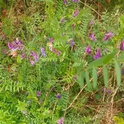 东方野豌豆,异名透骨草、日本野豌豆,多年生草本。茎有棱,匍匐、蔓生或攀援。偶数羽状复叶,叶轴顶端卷须有2~3分枝,托叶线形或线披针形,小叶椭圆形,广椭圆形至长卵圆形。总状花序,花冠蓝色或紫色,外面被长柔毛。荚果近长圆状菱形。种子扁圆球形。