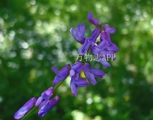 多年生攀援性草本,高60~120cm。茎细,具棱,稍有毛或无毛。偶数羽状复叶,托叶小,二深裂至基部,裂片线形,锐尖;小叶4~7对,叶轴末端具卷须;小叶椭圆形或卵形至长圆形或长卵形,长1~3.5cm,宽0.6~12cm,先端圆形或微凹,基部圆形,全缘,背面伏生细柔毛。总状花序腋生,与叶等长或稍长,花多数,花蓝紫色或紫色;萼钟状,萼齿三角形,短于萼筒;旗瓣倒卵形,先端微凹,翼瓣比旗瓣稍短,与龙骨瓣近等长。荚果近长圆形,长1.8~2.5cm,具1~4粒种子。花期6~8月,果期7~9月。