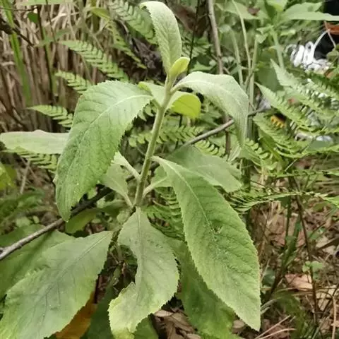 草本,根簇生,有时多少肉质。茎直立,高40-80厘米,基部径3-6毫米,圆柱形,有明显的条棱,上部有分枝,被白色长柔毛,在基部常脱毛,节间长0.5-4厘米。基部叶在花期凋落,或矮小的植株有时宿存,如存在时,基部叶常比中部的叶小;中部叶近无柄,纸质或薄纸质,狭或宽倒卵状长圆形,长12-20厘米,宽4-6.5厘米,基部长渐狭,顶端短尖或钝,边缘有疏生的点状细齿或小尖头,上面被短柔毛,下面被紧贴的白色绒毛,杂有密腺体,有时多少脱毛,中脉在两面多少凸起,侧脉9-11对,细弱,弧状上升,网脉不明显;上部叶渐小,长圆形或长圆状披针形,长5-12厘米,宽1-4厘米,基部渐狭,顶端短尖或渐尖;最上部叶苞片状。