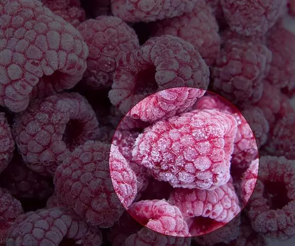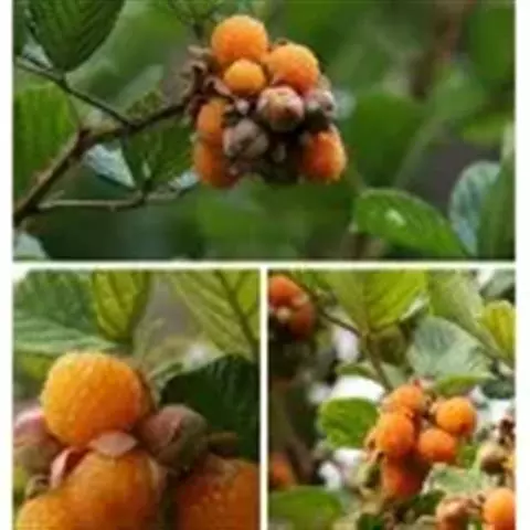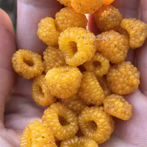 覆盆子果实为聚合果,由众多核果聚合而成,类球形,上部钝圆,底部较平坦,表面灰绿色或淡棕色,密被短绒毛。小核果约呈半月形,背面隆起,腹面有突起,表面棕色,背面及先端有灰白色毛,腹面及两侧有网状凹纹。质硬,内含棕色种子1粒。气清香,味微酸、涩。
